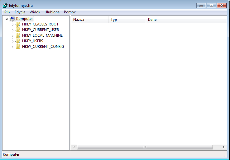 2. Druga rzecz do wykonania to zmiana wartości klucza rejestru w systemie. Brzmi groźnie ale takie nie jest. Klikamy Start i wpisujemy regedit i wciskamy enter, następnie potwierdzamy komunikat kontroli konta użytkownika. Mamy przed sobą okienko edytora rejestru.